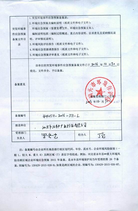 1、單位名稱(chēng): 汕頭市北軸廣業(yè)環(huán)保有限公司